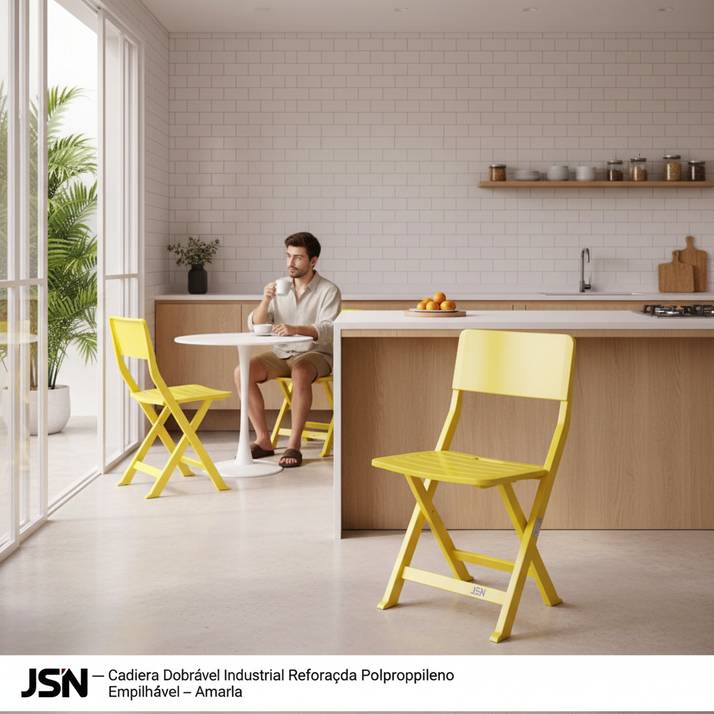 Compramos 50 unidades da Cadeira Dobrável Amarela para nossas áreas de espera e eventos internos. O polipropileno de alta densidade é notavelmente resistente, e a capacidade de 150 kg nos dá total segurança. A facilidade de dobrar e empilhar otimiza muito nosso espaço de armazenamento. Um investimento que valeu a pena pela robustez e cor vibrante que alegra o ambiente.