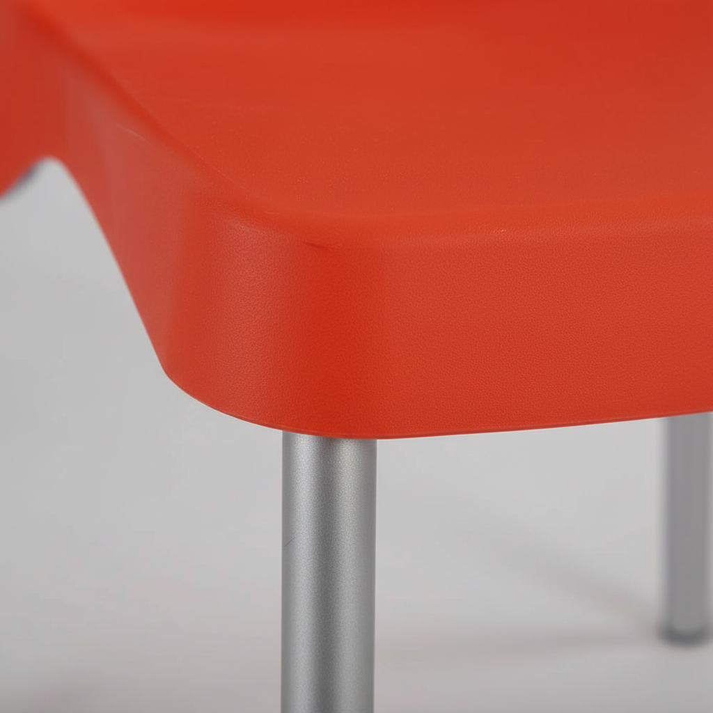 Cadeira Empilhável Plástica Reforçada Pés Alumínio para Refeitório — Vermelha
