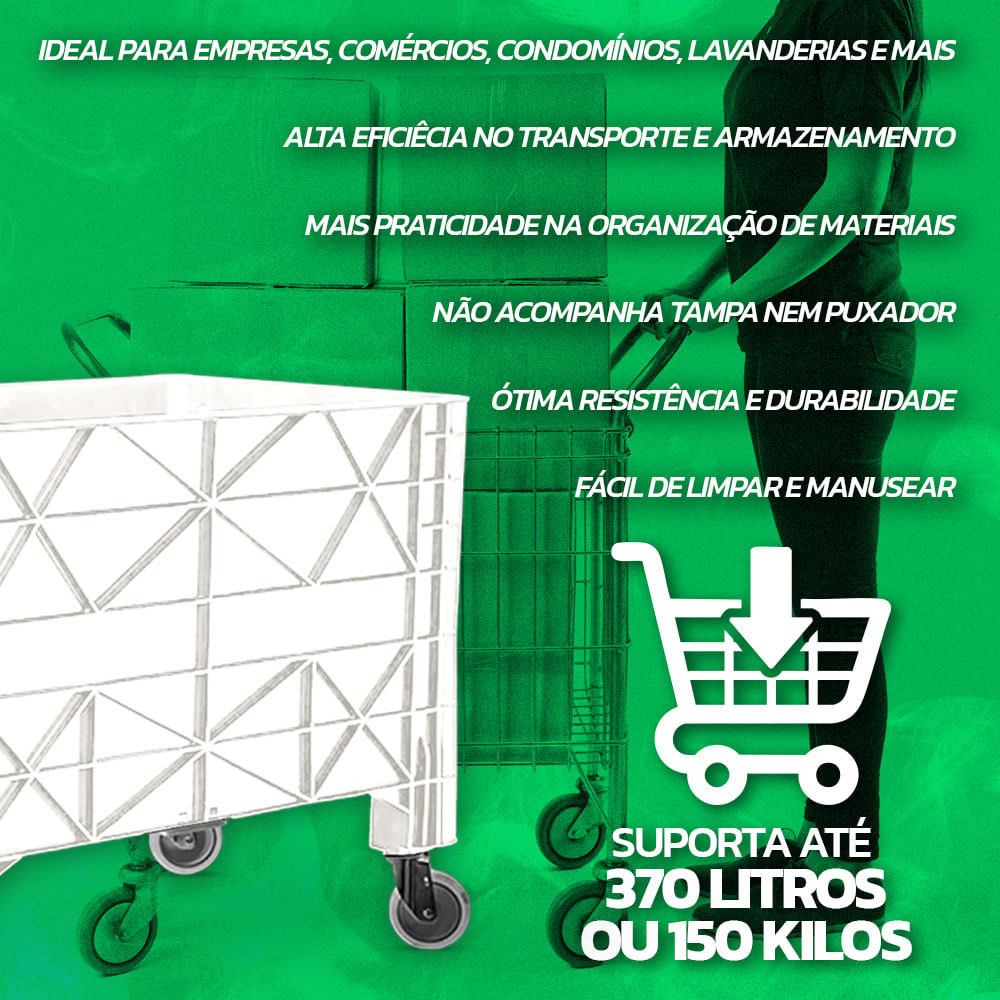 O Carrinho Coletor Empilhável é ideal para uma diversidade de ambientes, como áreas abertas, condomínios, shoppings e lugares fechados como comércios, hospitais, salões, e outros locais onde existe um