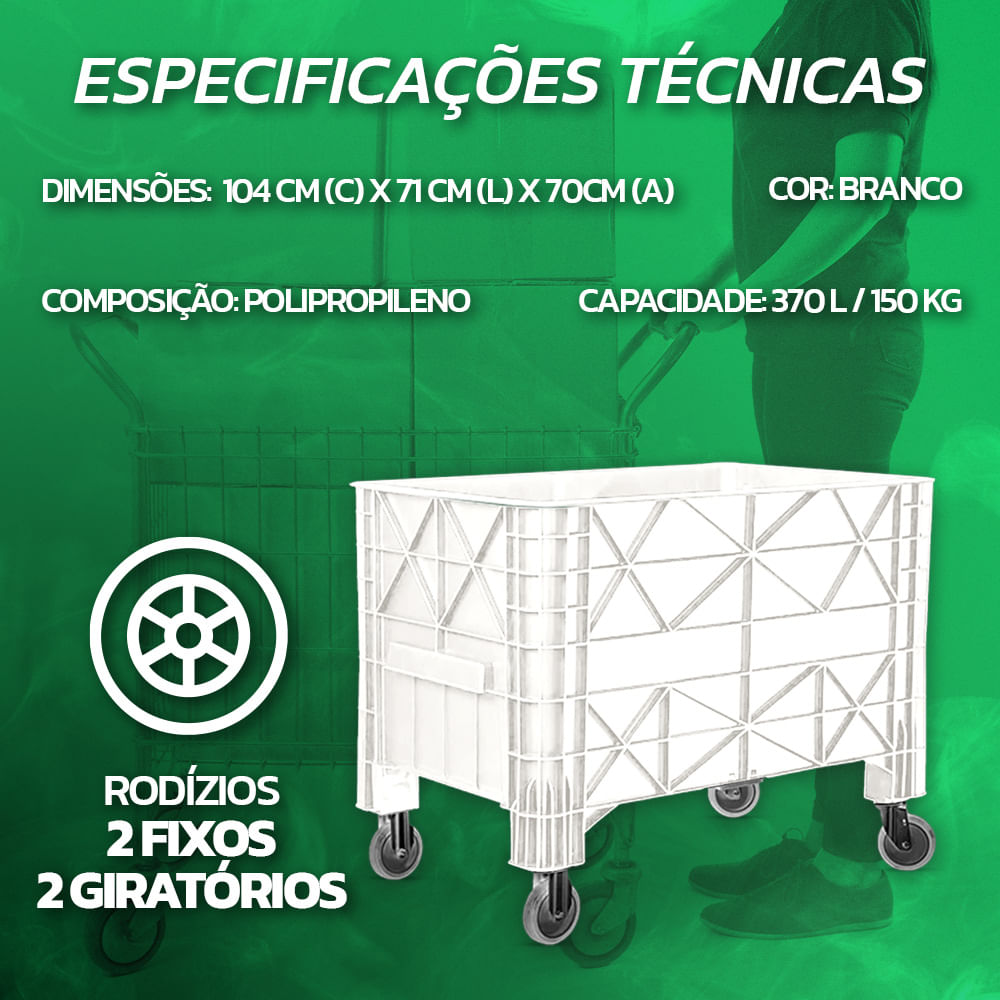 Carrinho Coletor Empilhável JSN Branco 370L