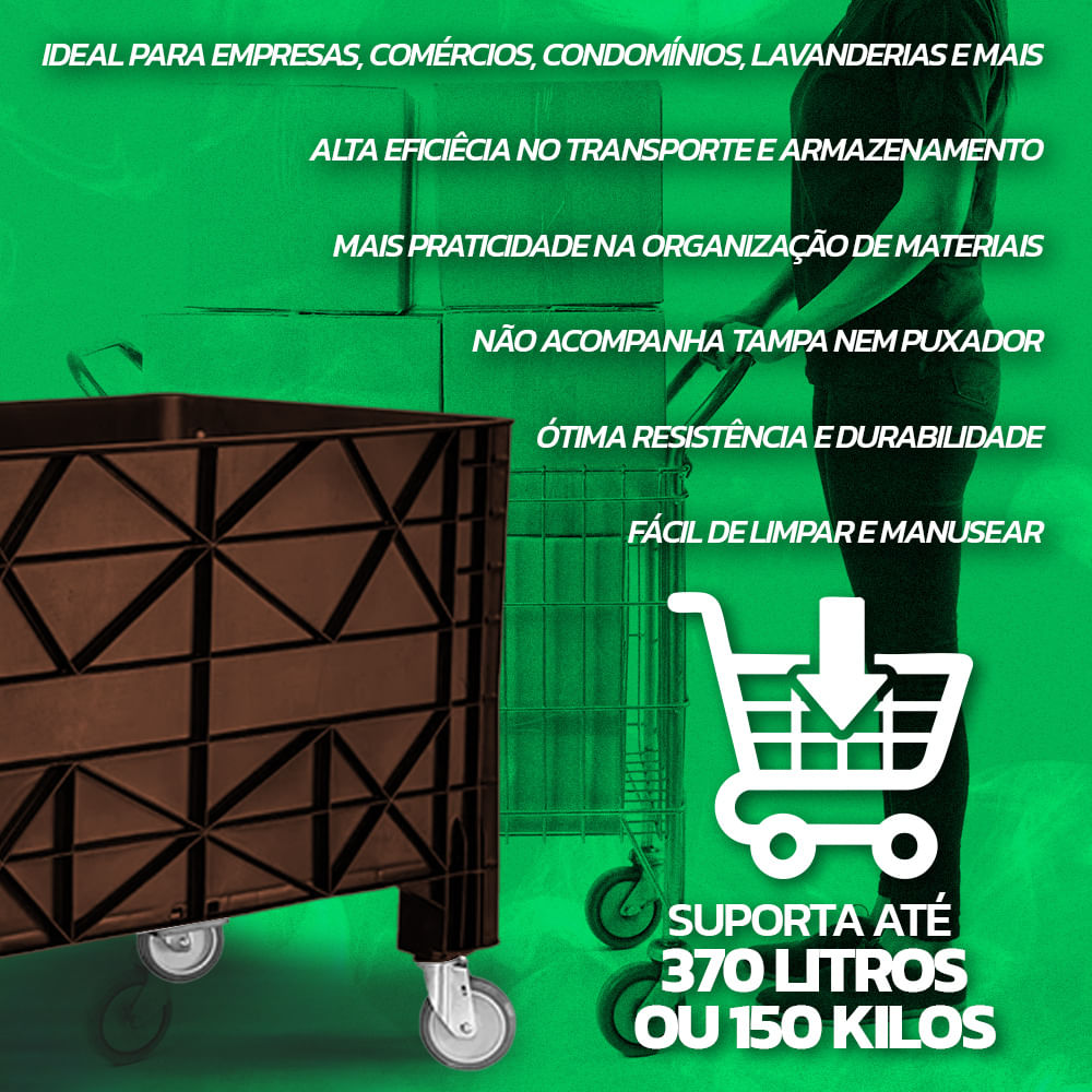O Carrinho Coletor Empilhável é ideal para diversos ambientes, como áreas abertas, condomínios, shoppings e espaços fechados, como comércios, hospitais, salões e outros locais com grande fluxo de pess