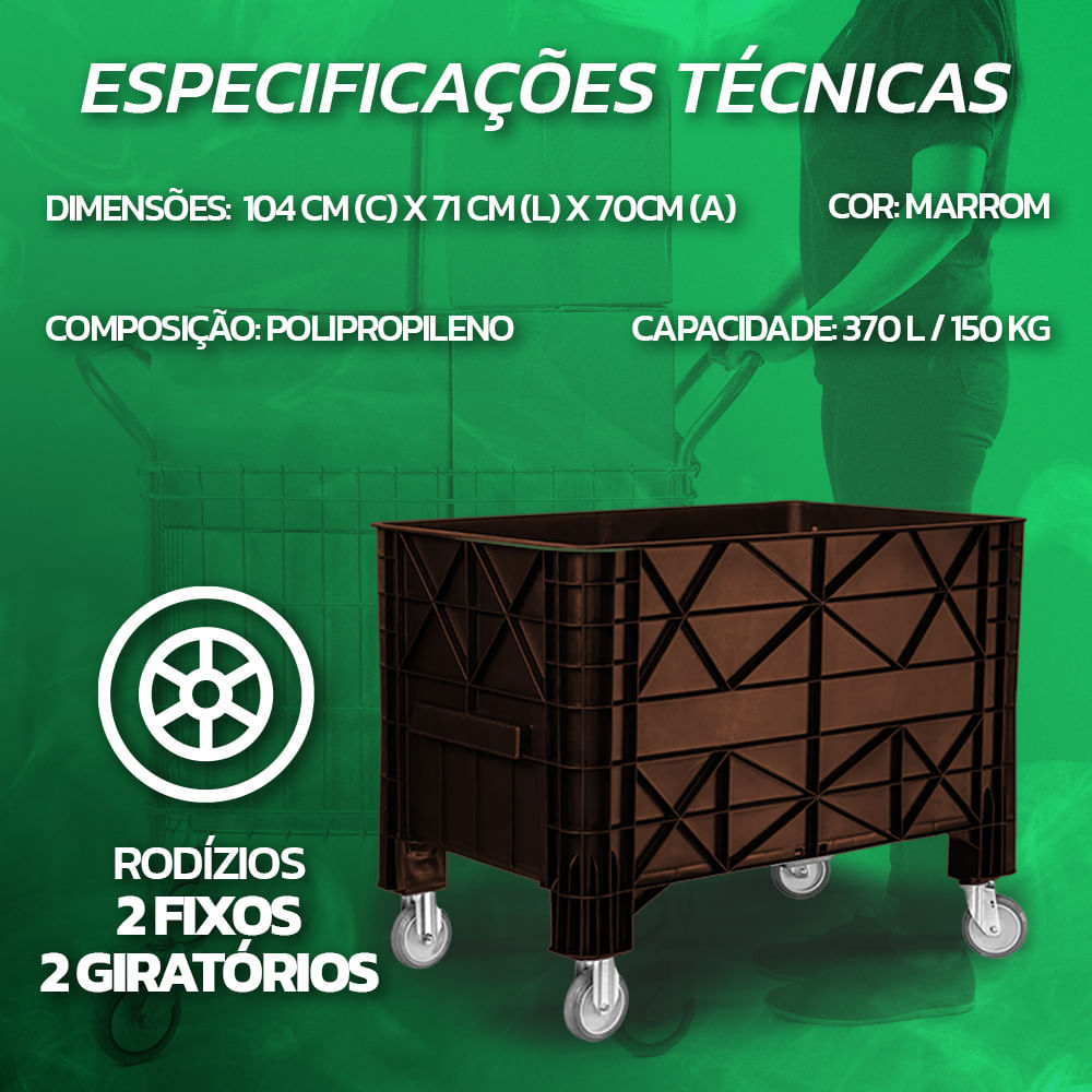 Carrinho Coletor Empilhável JSN Marrom 370L