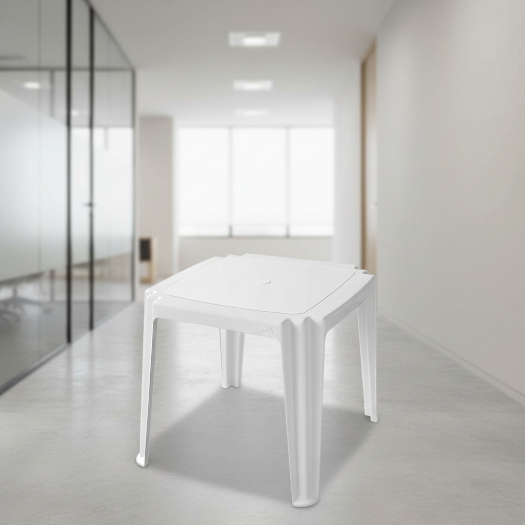 Compramos 5 mesas JSN ME1B para a área de espera e copa da clínica. A construção monobloco é um ponto forte, garantindo estabilidade e resistência a arranhões. A cor branca é ideal para manter a sensação de higiene e limpeza, algo crucial em nosso segmento. A capacidade de empilhamento também nos ajuda a otimizar o espaço quando necessário.