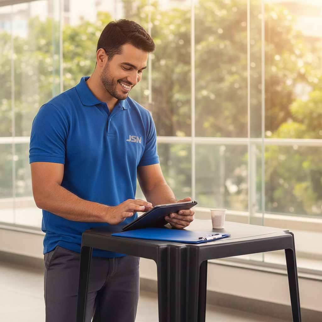 Compramos 50 mesas JSN ME1P para equipar nosso novo centro de distribuição. A característica monobloco e o peso de 6,5 kg facilitam muito o transporte e a organização em eventos internos. A capacidade de empilhamento de 10 unidades é um ponto fortíssimo para o armazenamento, otimizando nosso espaço. A durabilidade do material é inquestionável.