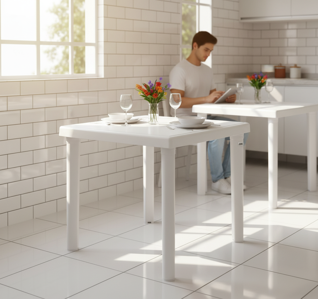 Mesa Corporativa Quadrada Polipropileno — Durabilidade e Otimização de Espaço