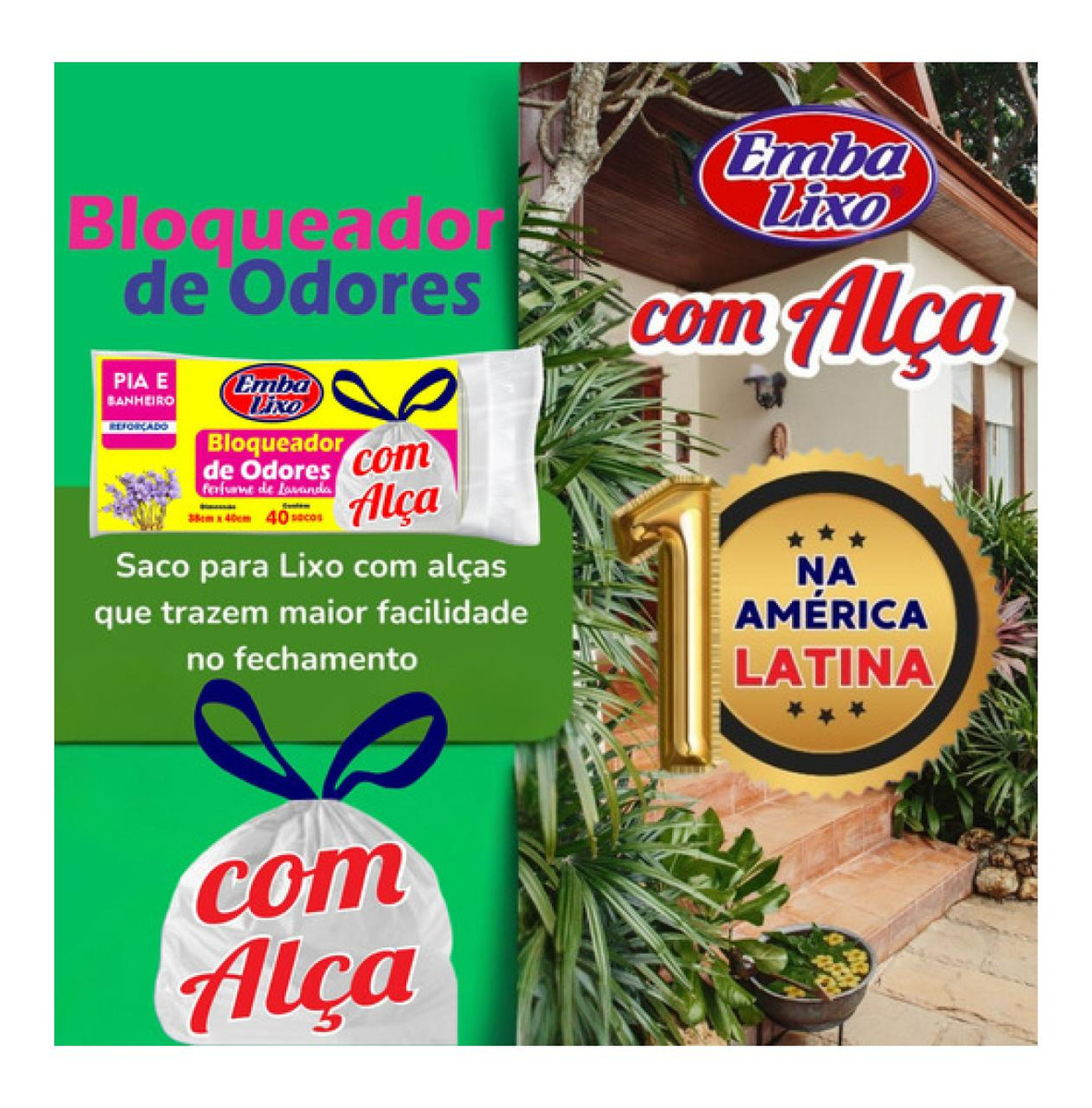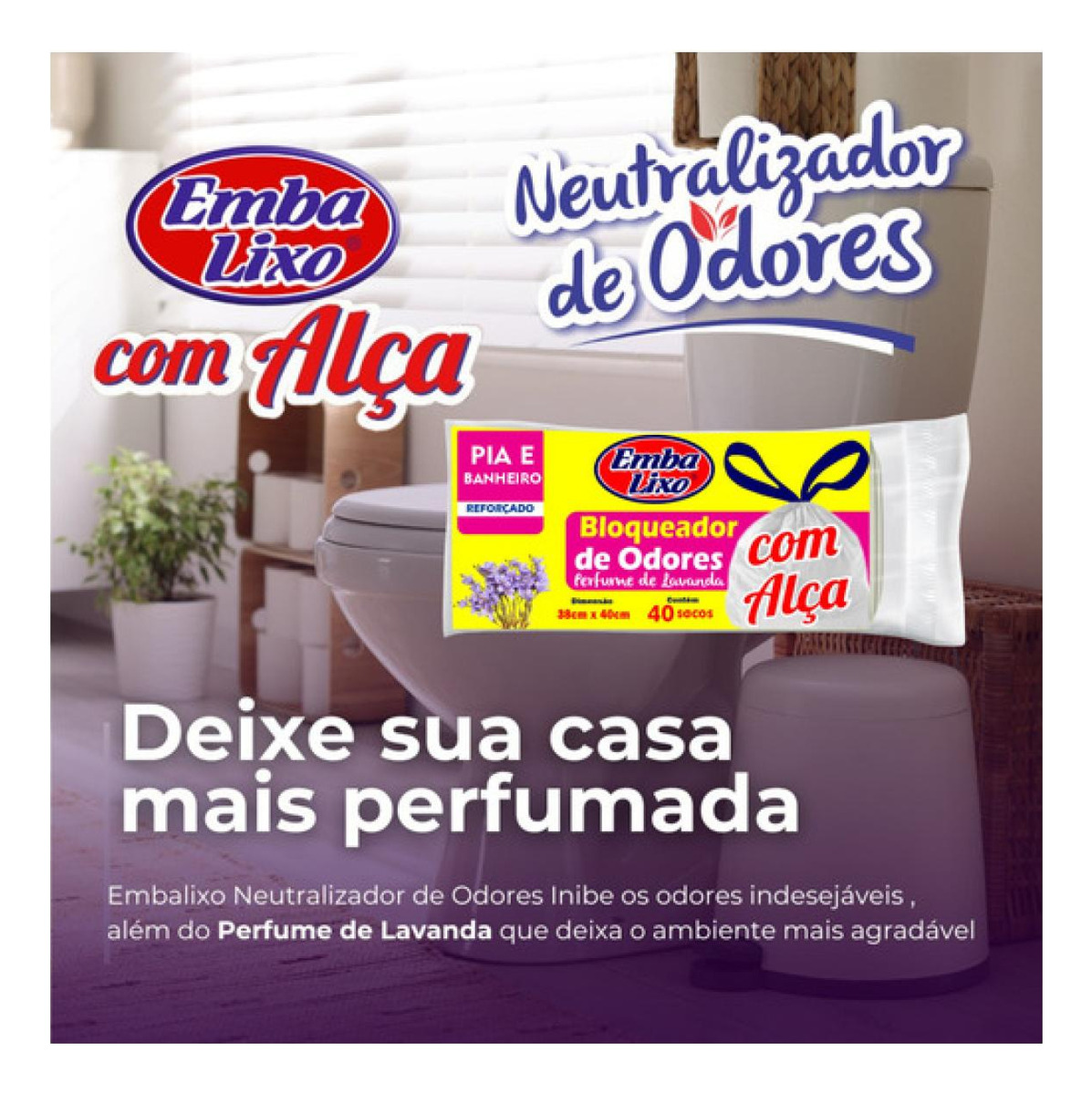 Saco De Lixo Pia E Banheiro Lavanda Com Alça Embalixo 40un